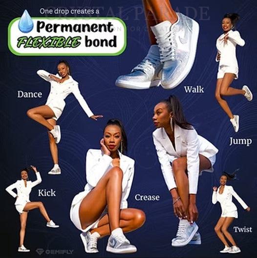 In this glue kit, you will receive everything you need to properly adhere rhinestones to shoes, boots or trainers. As well as the glue, application tips, bag, cleaner and step-by-step guide, we have also included some FREE Zodiac crystals to experiment with. We would also recommend purchasing a wax pencil to pick up and place the rhinestones.